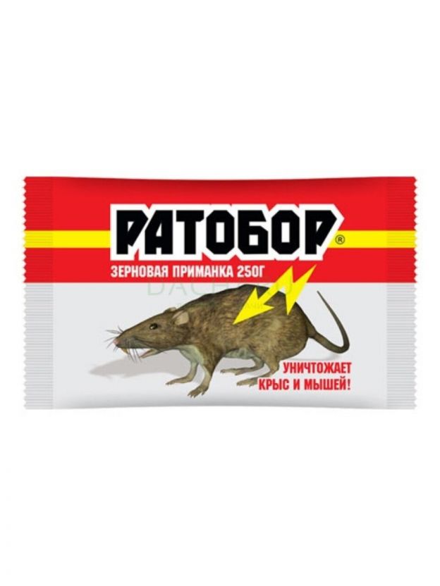 «Ратобор» - зерновая готовая приманка для уничтожения крыс и мышей. Она охотно поедается ими, легко распределяется между собой. Зерно для грызунов - корм привычный, поэтому начало поедания приманки после раскладки очень быстрое. Тушки умерших животных мумифицируются и не издают неприятного запаха.