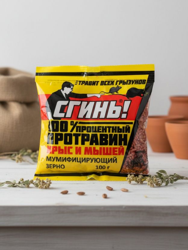 Многие спрашивают: чем отличается это средство от аналогов? Сгинь! не содержит дополнительных ароматизаторов, что снижает риск привыкания у вредителей. Благодаря фасовке 100 г его удобно использовать как в доме, так и на даче или в гараже. Как использовать родентицид? Просто разложите зерно в местах активности крыс и мышей, избегая контакта с пищевыми продуктами и животными. Подходит ли для дачи? Да, благодаря формату и составу средство эффективно даже в неотапливаемых помещениях и сараях.