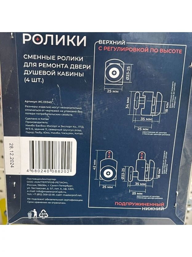Ролики для душевой кабины 4 шт, одинарный нижний 2шт + одинарный верхний 2шт, MasterProf, №2, ИС.131345