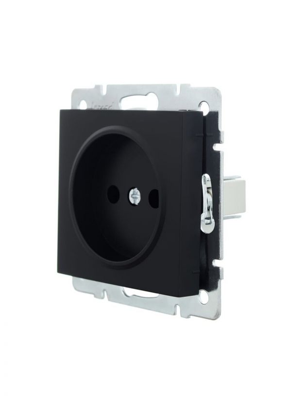 Розетка 1 гнездо, без заземления, 16 А, 220 В, пластик, IP20, черный бархат, ПБТ, Lezard, Vesna, 742-4288-121B