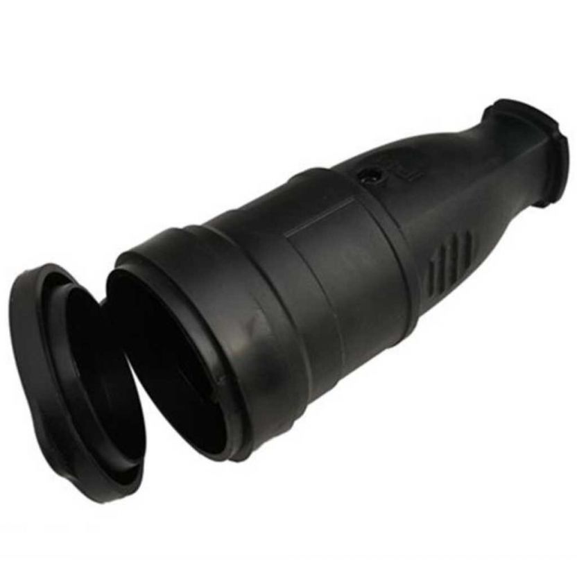 Розетка 1 гнездо, с заземлением, 16 А, 250 В, каучук, IP44, черная, разборная, круглая, General Lighting Systems, GRV-S-16-R-G-B-IP44, 470518