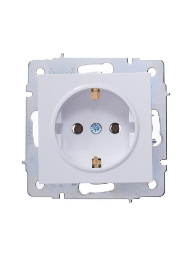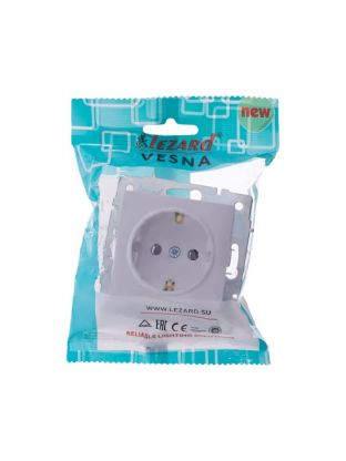 Розетка 1 гнездо, с заземлением, 16 А, 250 В, пластик, IP20, белая, ПБТ, Lezard, Vesna, 742-0288-122B
