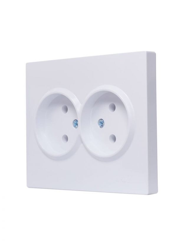 Розетка 2 гнезда, без заземления, 16 А, 220 В, пластик, IP20, белая, ПБТ, Lezard, Vesna, 742-0200-128B