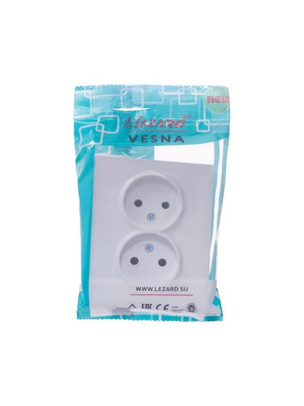 Розетка Lezard Vesna изготовлена из синтетического полимера с высокими показателями эластичности и ударопрочности. Подходит для установки в жилых и нежилых помещениях.
