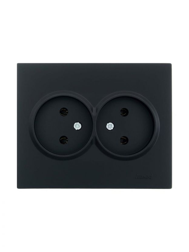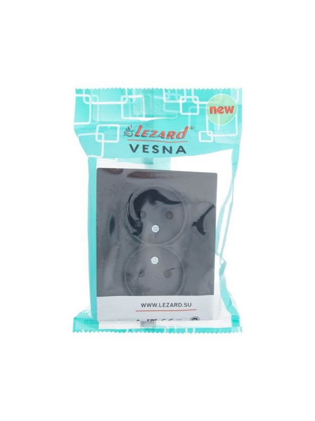 Розетка 2 гнезда, без заземления, пластик, IP20, черный бархат, ПБТ, Lezard, Vesna, 742-4200-128B