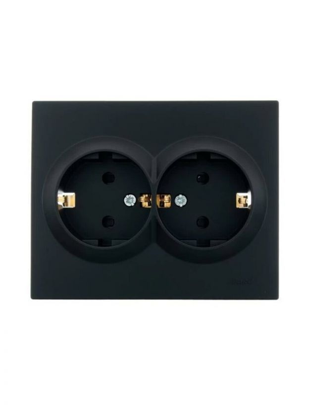 Розетка 2 гнезда, с заземлением, 16 А, 250 В, с защитными шторками, пластик, IP20, черный бархат, с защитой от детей ПБТ, Lezard, Vesna, 742-4200-178B