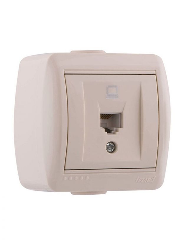Розетка компьютерная открытой установки, без заземления, пластик, кремовая, Lezard, Nata, 710-0300-139