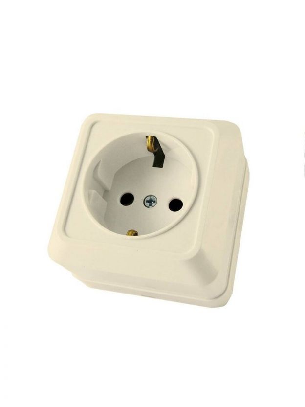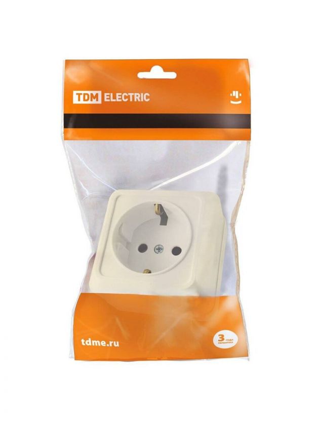 Розетка открытой установки, 1 гнездо, с заземлением, 16 А, 250 В, керамика, IP20, слоновая кость, 2П+3, TDM Electric, Ладога, SQ1801-0211
