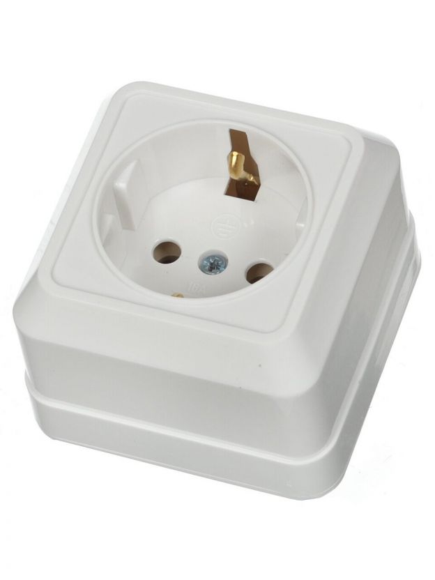 Розетка открытой установки, 1 гнездо, с заземлением, 16 А, IP20, белая, TDM Electric, Ладога, SQ1801-0015