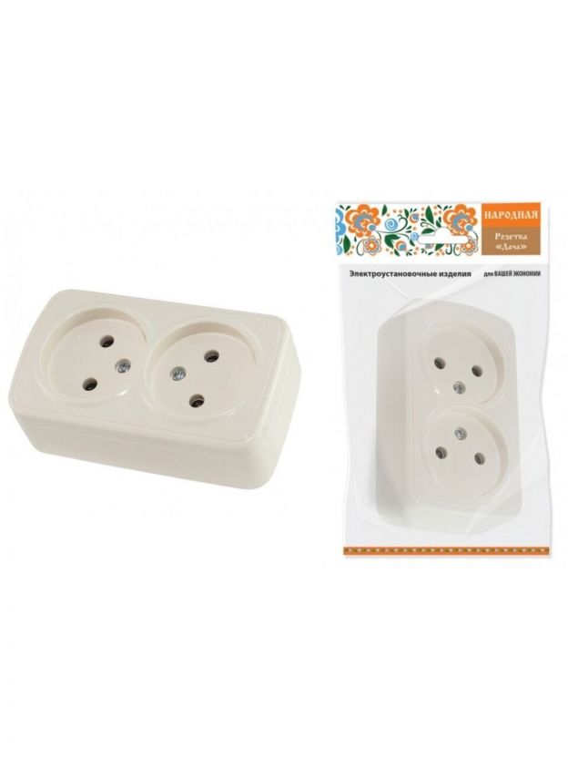 Розетка открытой установки, 2 гнезда, без заземления, 10 А, IP20, слоновая кость, 2П, TDM Electric, Дача, SQ1824-0022