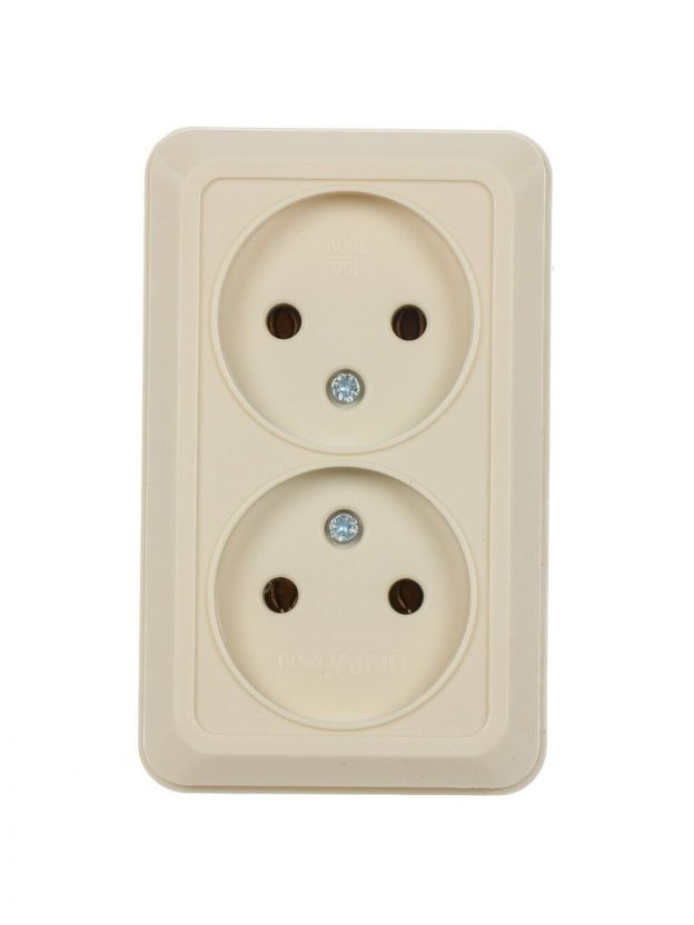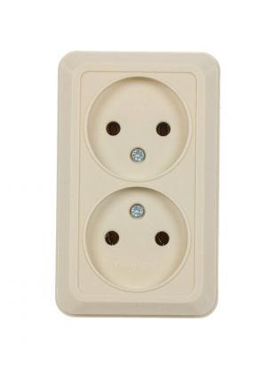 Розетка открытой установки, 2 гнезда, без заземления, 16 А, ABS пластик, IP20, слоновая кость, UNIVersal, Олимп, Б-О0102