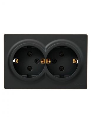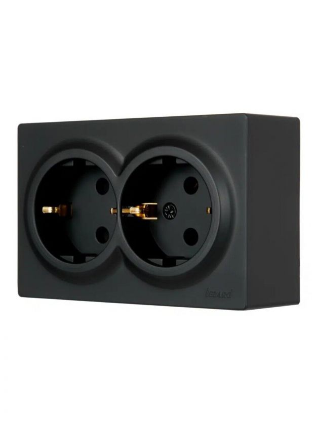 Розетка открытой установки, 2 гнезда, с заземлением, 16 А, 220 В, пластик, IP20, черная, закрытый корпус, Lezard, Leto, 752-4200-127B