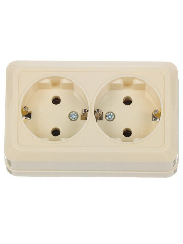 Розетка открытой установки, 2 гнезда, с заземлением, 16 А, ABS пластик, IP20, слоновая кость, UNIVersal, Олимп, Б-О0128