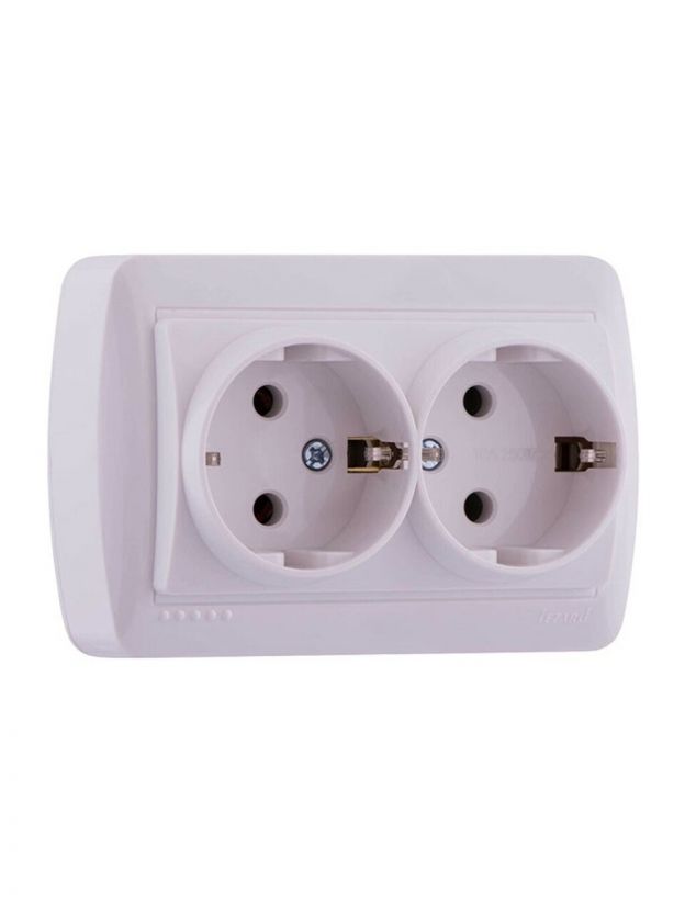 Розетка открытой установки, 2 гнезда, с заземлением, пластик, белая, закрытый корпус, Lezard, Demet, 711-0200-127