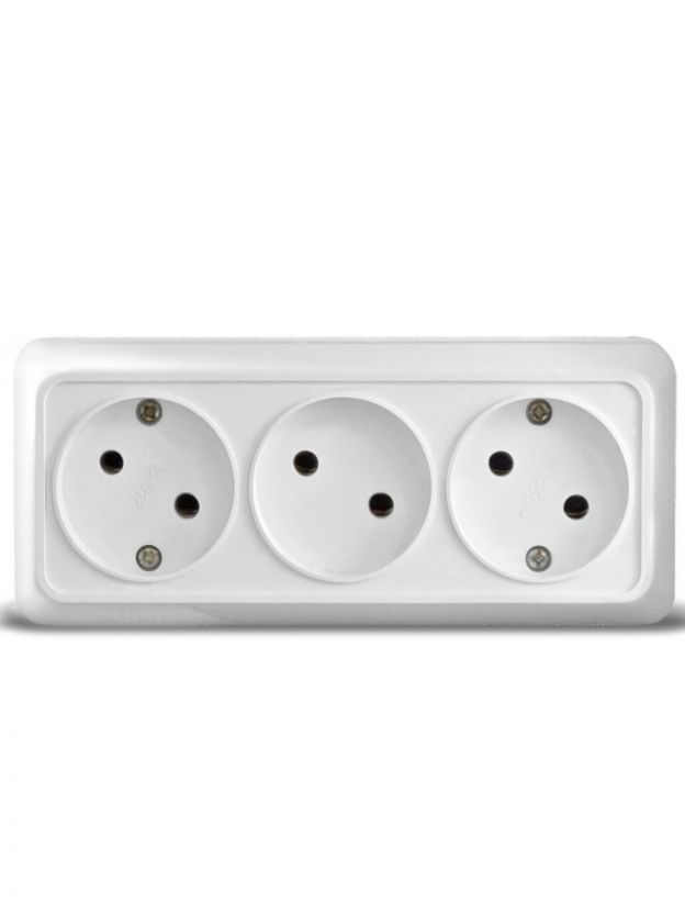 Розетка открытой установки, 3 гнезда, без заземления, 16 А, керамика, белая, UNIVersal, Олимп, 1160