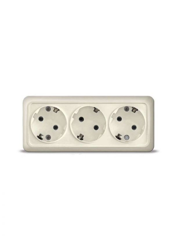 Розетка открытой установки, 3 гнезда, с заземлением, 16 А, ABS пластик, IP20, слоновая кость, UNIVersal, Олимп, 116720