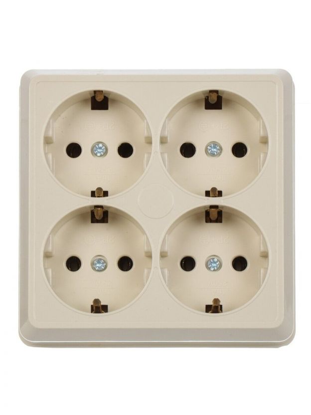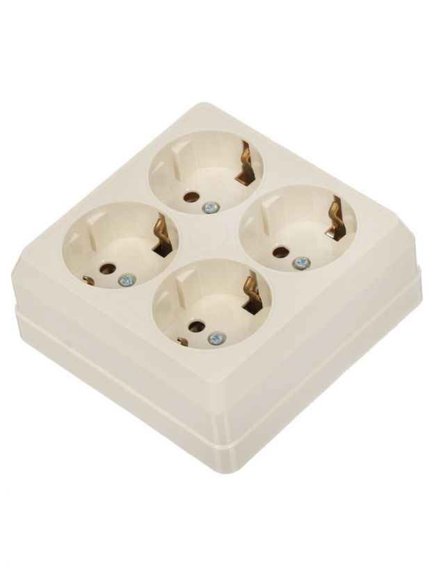 Розетка открытой установки, 4 гнезда, с заземлением, 16 А, ABS пластик, IP20, слоновая кость, UNIVersal, Олимп, 1171/2 ВКП