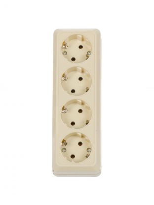 Розетка открытой установки, 4 гнезда, с заземлением, 16 А, ABS пластик, IP20, слоновая кость, UNIVersal, Олимп, 11690