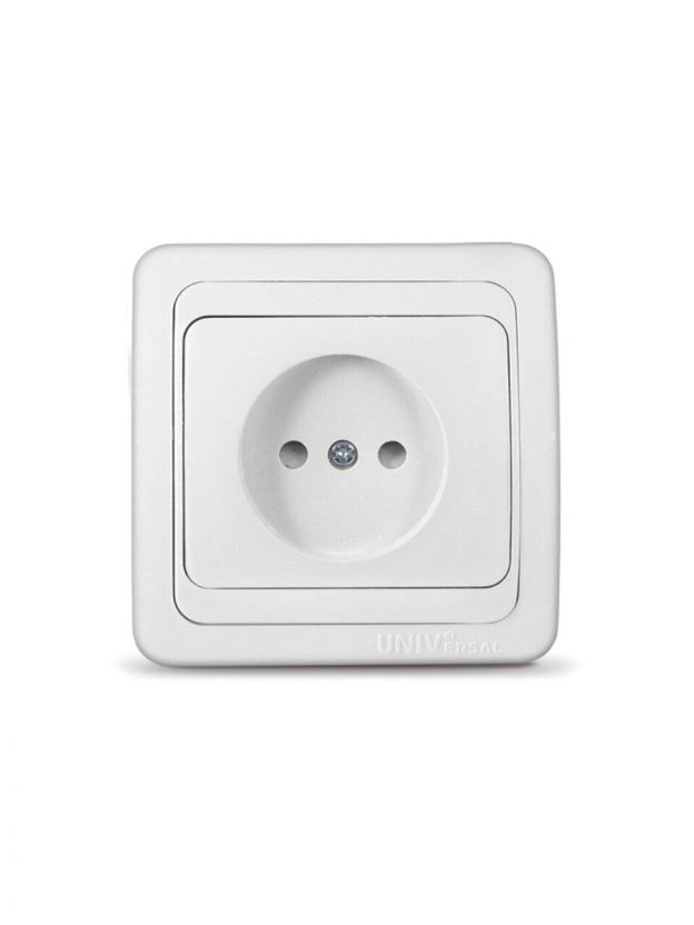 Розетка скрытой установки, 1 гнездо, без заземления, 16 А, с защитными шторками, керамика, белая, UNIVersal, Валери, В0022x