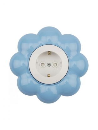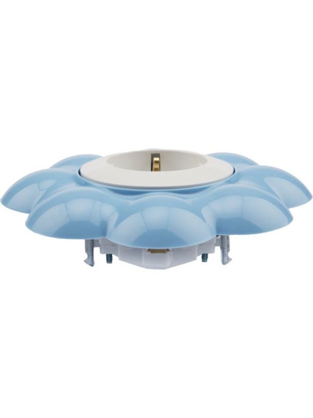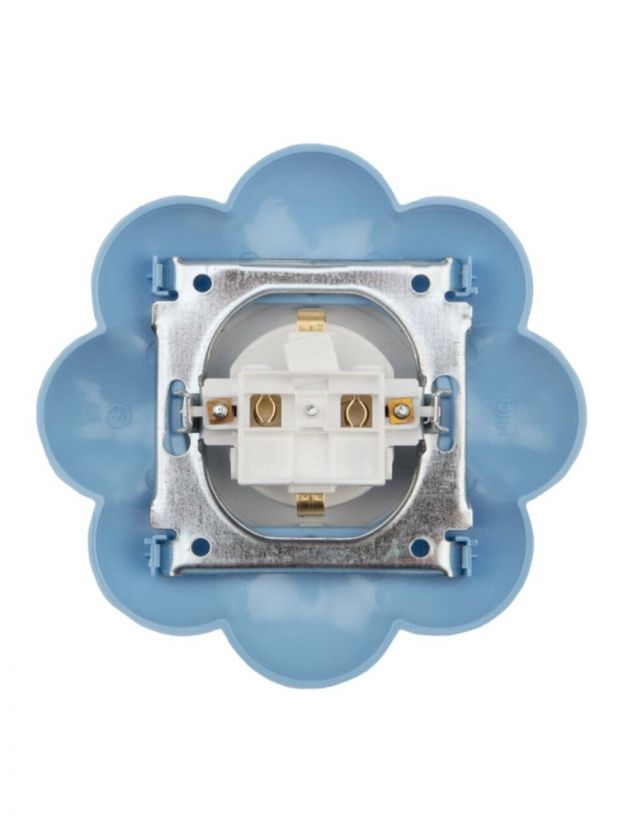Розетка скрытой установки, 1 гнездо, с заземлением, 16 А, 220-250 В, с защитными шторками, термопластик, IP20, белый, голубой, Kranz, Happy, KR-78-0628