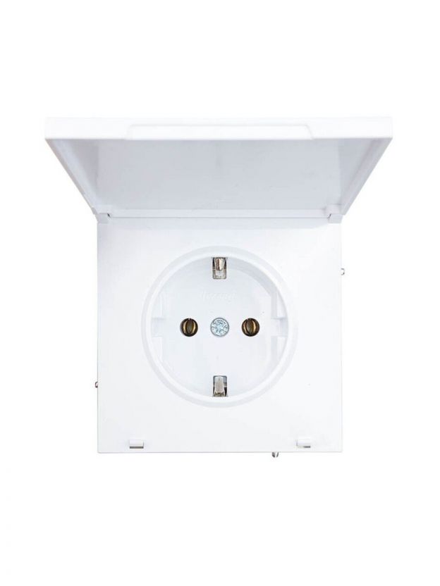 Розетка скрытой установки, 1 гнездо, с заземлением, 16 А, 250 В, пластик, IP20, белая, безвинтовой, зажим/клемма, с крышкой, Lezard, Zima, 704-0288-123BQC