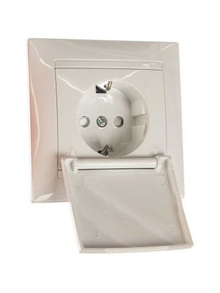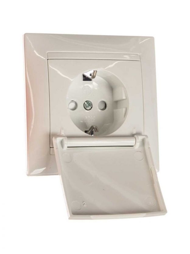 Розетка скрытой установки, 1 гнездо, с заземлением, 16 А, 250 В, с защитными шторками, IP44, белая, с крышкой, TDM Electric, Лама, SQ1815-0014