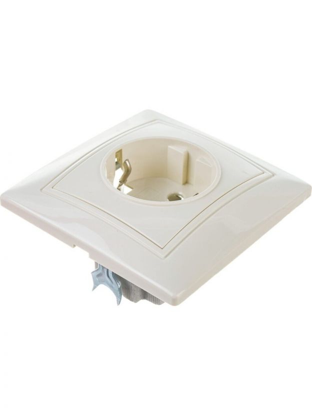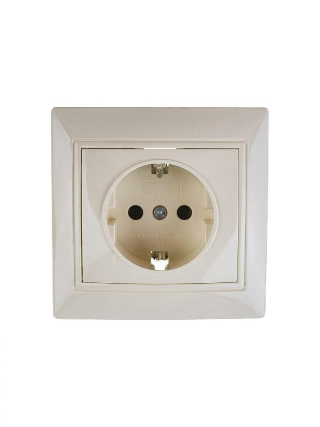 Розетка скрытой установки, 1 гнездо, с заземлением, 16 А, ABS пластик, IP20, слоновая кость, UNIVersal, Севиль, Б-С0028