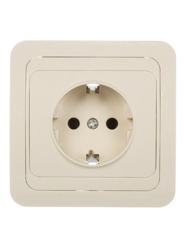 Розетка скрытой установки, 1 гнездо, с заземлением, 16 А, ABS пластик, IP20, слоновая кость, UNIVersal, Валери, Б-В0028