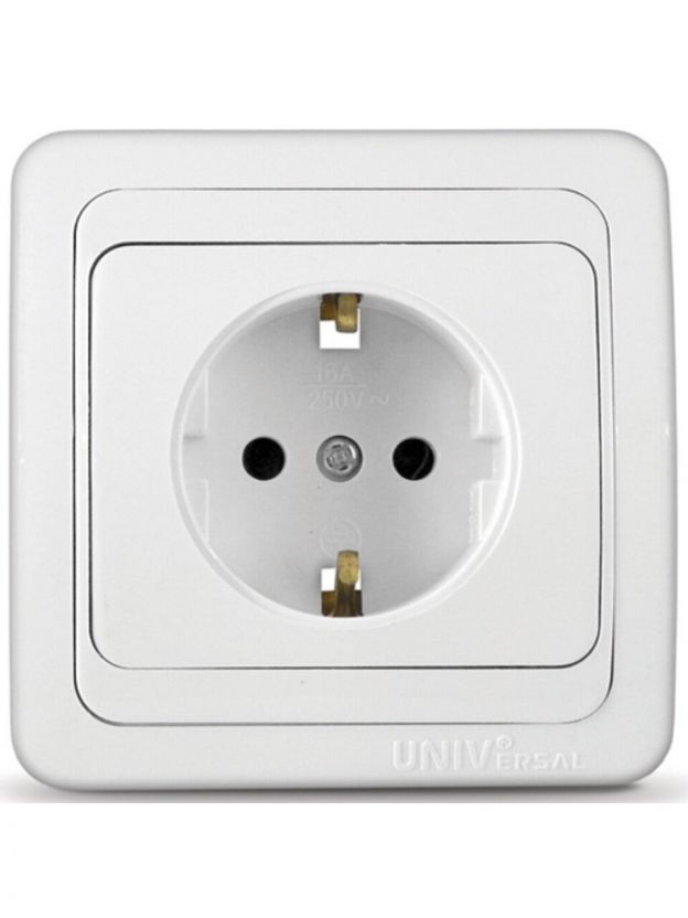Розетка скрытой установки, 1 гнездо, с заземлением, 16 А, керамика, белая, UNIVersal, Валери, В0028