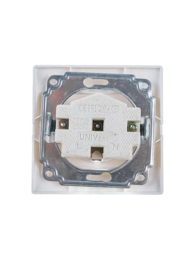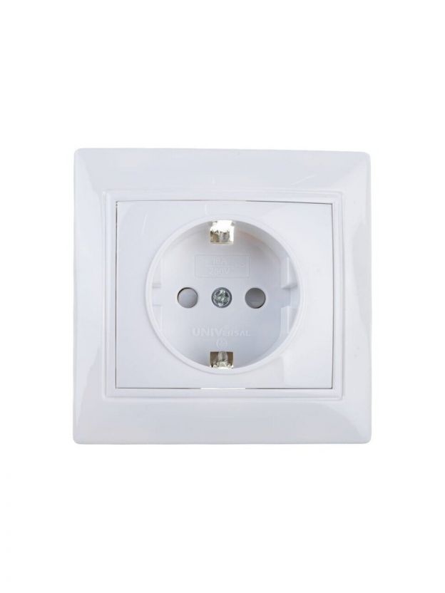 Розетка скрытой установки, 1 гнездо, с заземлением, 16 А, с защитными шторками, ABS пластик, IP20, белая, UNIVersal, Севиль, С0049