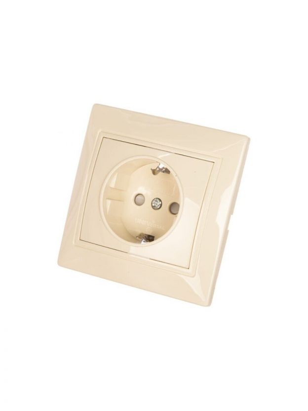 Розетка скрытой установки, 1 гнездо, с заземлением, 16 А, с защитными шторками, ABS пластик, IP20, слоновая кость, UNIVersal, Севиль, Б-С0049