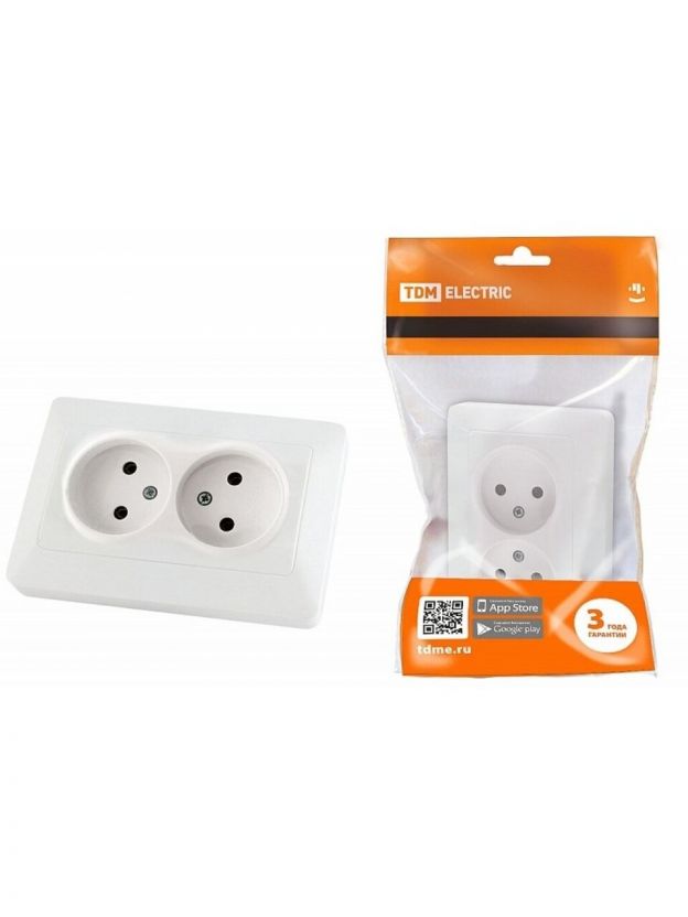 Розетка скрытой установки, 2 гнезда, без заземления, 10 А, 250 В, белая, 2П, TDM Electric, Ильмень, SQ1823-0011