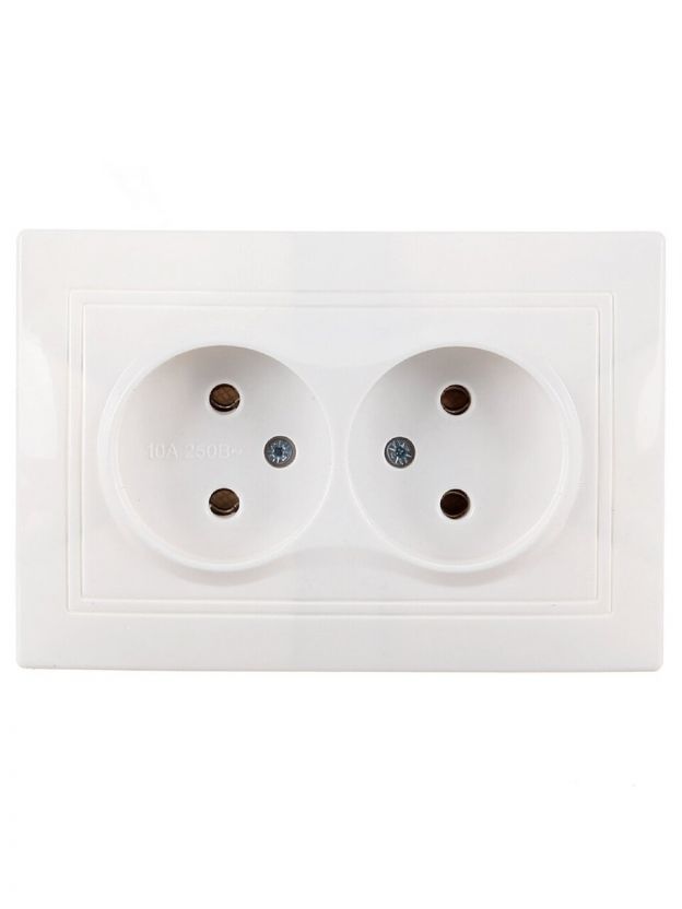 Розетка скрытой установки, 2 гнезда, без заземления, 10 А, керамика, белая, TDM Electric, Таймыр, SQ1814-0013