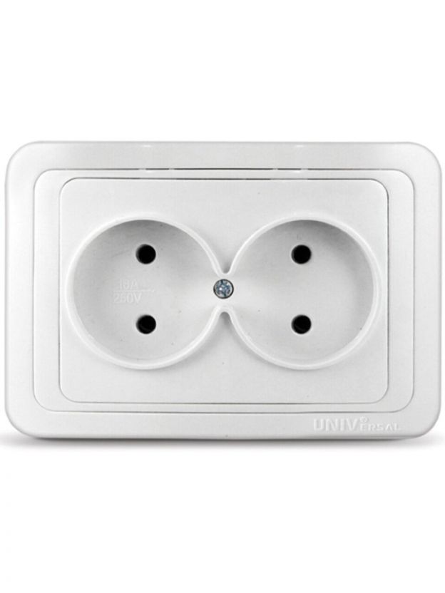 Розетка скрытой установки, 2 гнезда, без заземления, 16 А, керамика, белая, UNIVersal, Валери, В0102