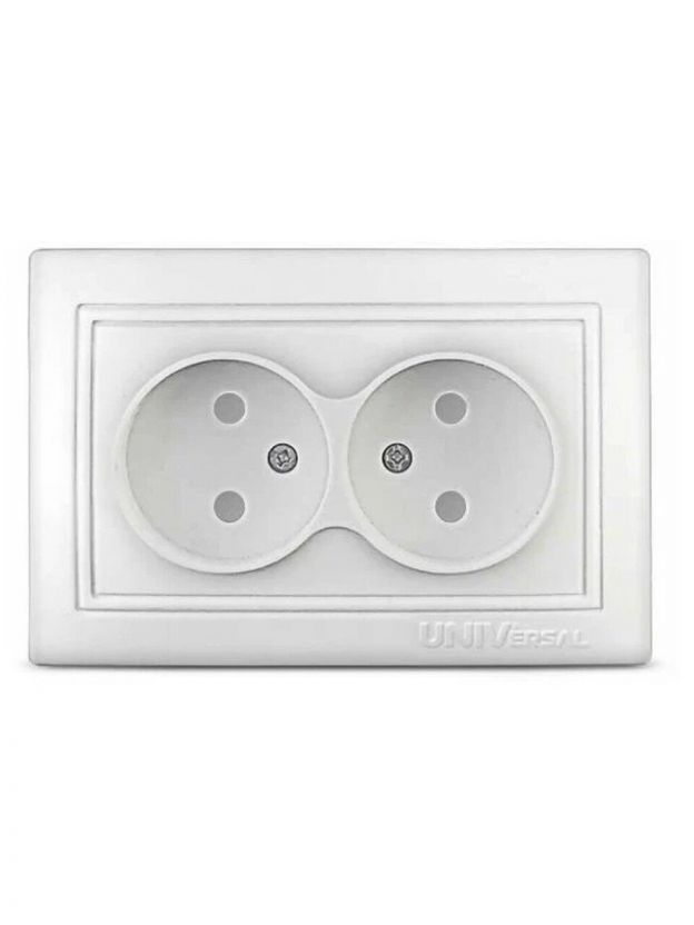 Розетка скрытой установки, 2 гнезда, без заземления, 16 А, с защитными шторками, ABS пластик, IP20, белая, UNIVersal, Севиль, С0048