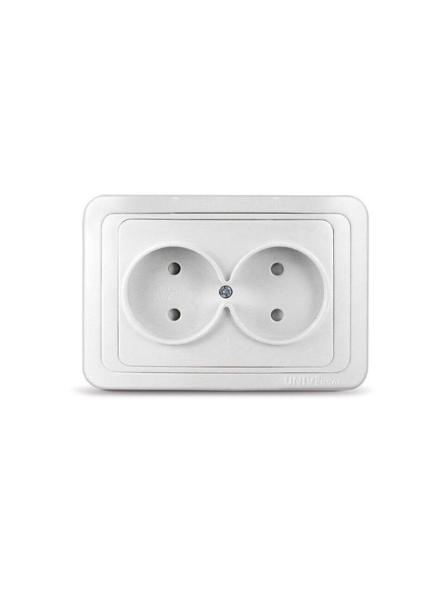 Розетка скрытой установки, 2 гнезда, без заземления, 16 А, с защитными шторками, керамика, белая, UNIVersal, Валери, В0102x