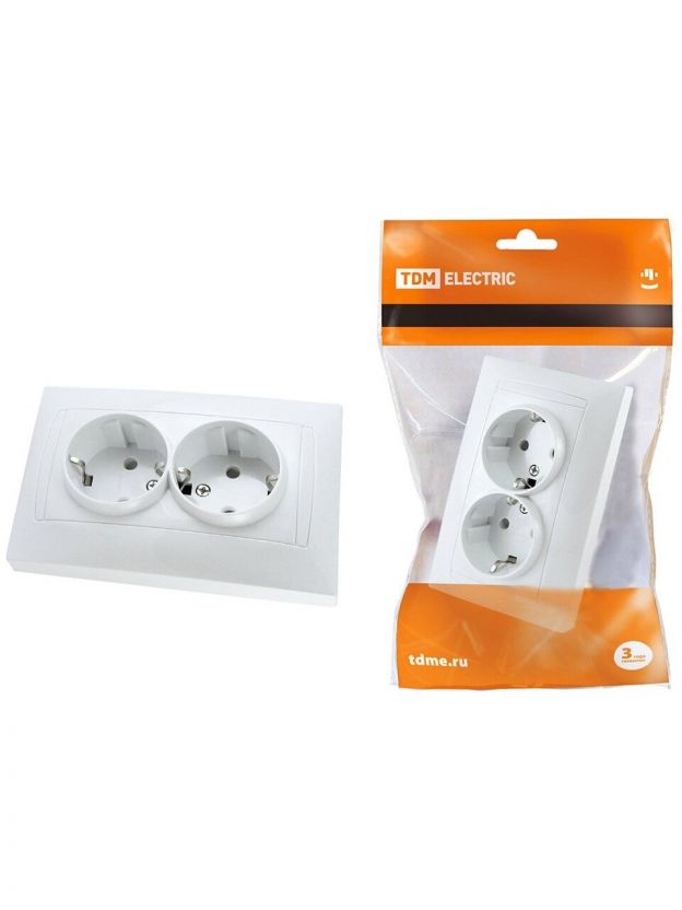 Розетка скрытой установки, 2 гнезда, с заземлением, 16 А, 250 В, с защитными шторками, белая, TDM Electric, Лама, SQ1815-0013