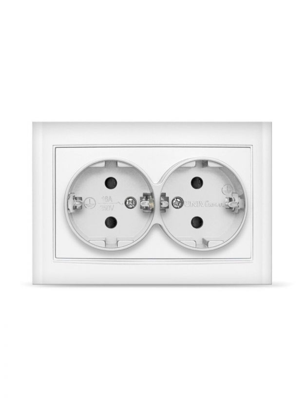 Розетка скрытой установки, 2 гнезда, с заземлением, 16 А, ABS пластик, IP20, белая, UNIVersal, Бриллиант, 7947533