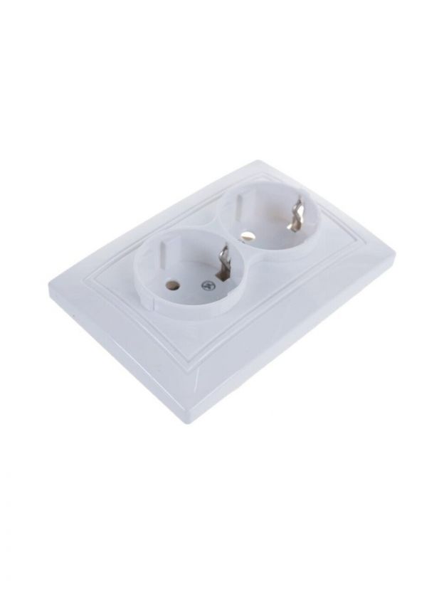 Розетка скрытой установки, 2 гнезда, с заземлением, 16 А, ABS пластик, IP20, белая, UNIVersal, Севиль, С0128