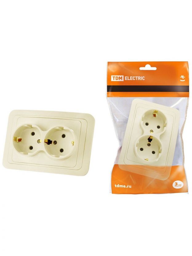 Розетка скрытой установки, 2 гнезда, с заземлением, 16 А, слоновая кость, TDM Electric, Валдай, SQ1804-0110
