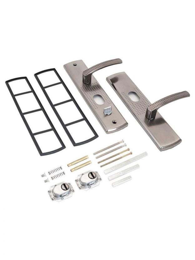 Ручка на планке под цилиндровый механизм. Предназначена для китайских металлических дверей, подходят для замков автоматического и не автоматического закрывания. Комплектация: две ручки, винтовые стяжки, пластиковые прокладки и квадратный штырь (8х8 мм) 110 мм, комплекты стержней для автоматических и не автоматических замков. Характеристики: Материал планки: сталь, толщиной 1,1 мм; Материал ручки: алюминиевый сплав; Покрытие: гальваническое; Межосевое расстояние: 68 мм; Размеры планки: 70х275 мм; Длина/высота ручки: 120/19 мм; Цвет ручек и планки: никель.