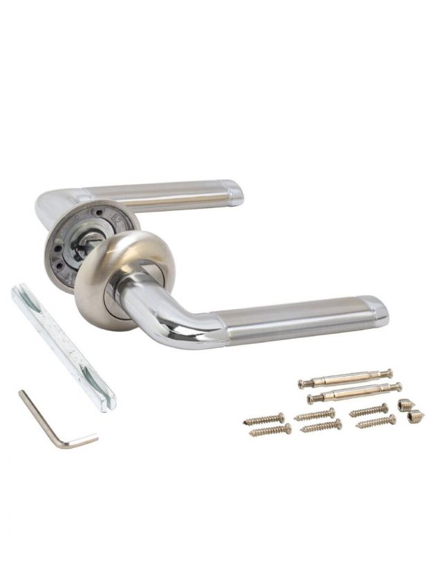 Ручка дверная Стандарт, 28SN/CP, 00013774, матовый никель, хром, алюминиевый сплав
