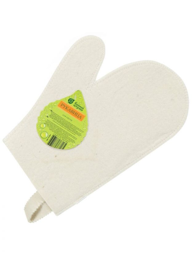 Рукавица или варежка для бани - порой очень необходимый аксессуар, толстая рукавица из войлока, предназначена защитить ваши руки от высоких температур, когда вы льете воду на камни, и в случае если потребуется их двигать руками, если возникнет необходимость взяться за какой-либо другой раскаленный предмет, так же рукавица защищает от заноз, при растопке бани.