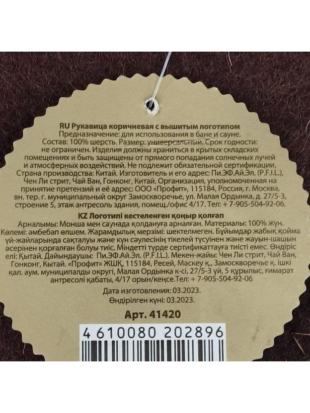 - Тип: рукавица для бани.