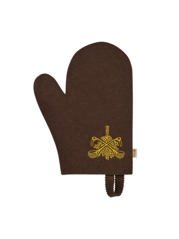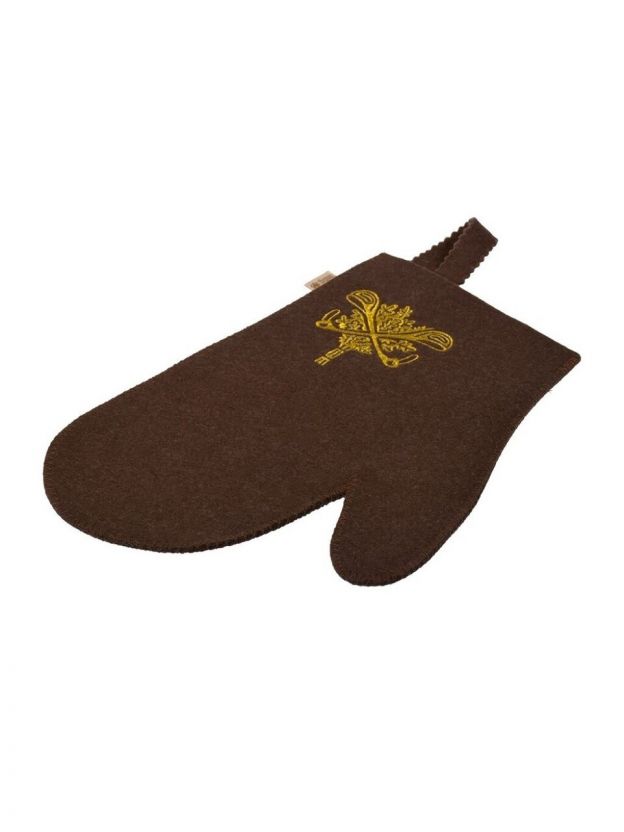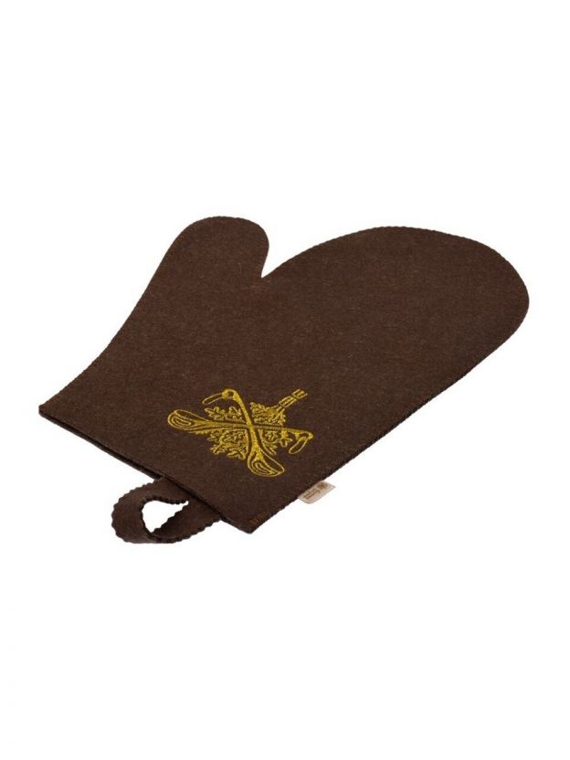 Рукавица для бани войлок, лого, коричневая, Банные штучки, 41420