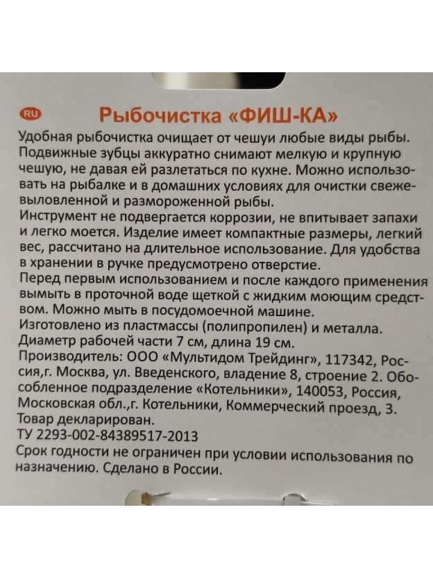 Откройте для себя удобство и эффективность с рыбочисткой "ФИШ-ка" от бренда Мультидом. Этот инструмент станет незаменимым помощником на кухне, упрощая процесс чистки рыбы. Изготовленная из прочного пластика и металла, она обеспечивает надежность и долговечность.