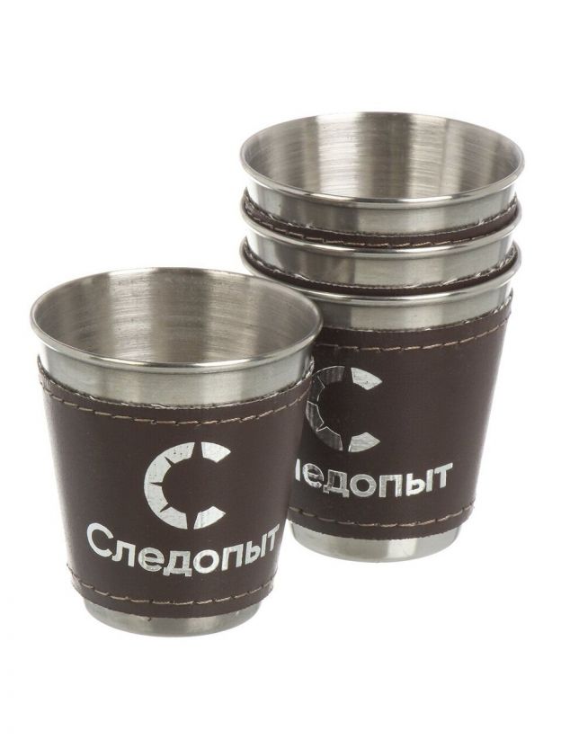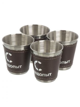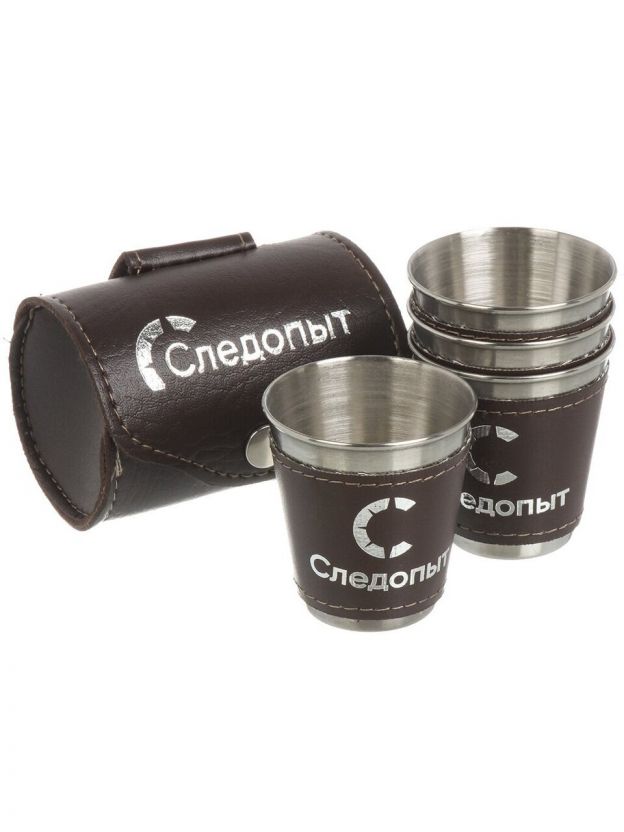 Рюмка нержавеющая сталь, 60 мл, 4 предмета, в кожаной тубе, рюмки в оплете, Следопыт, PF-CWS-P29SET