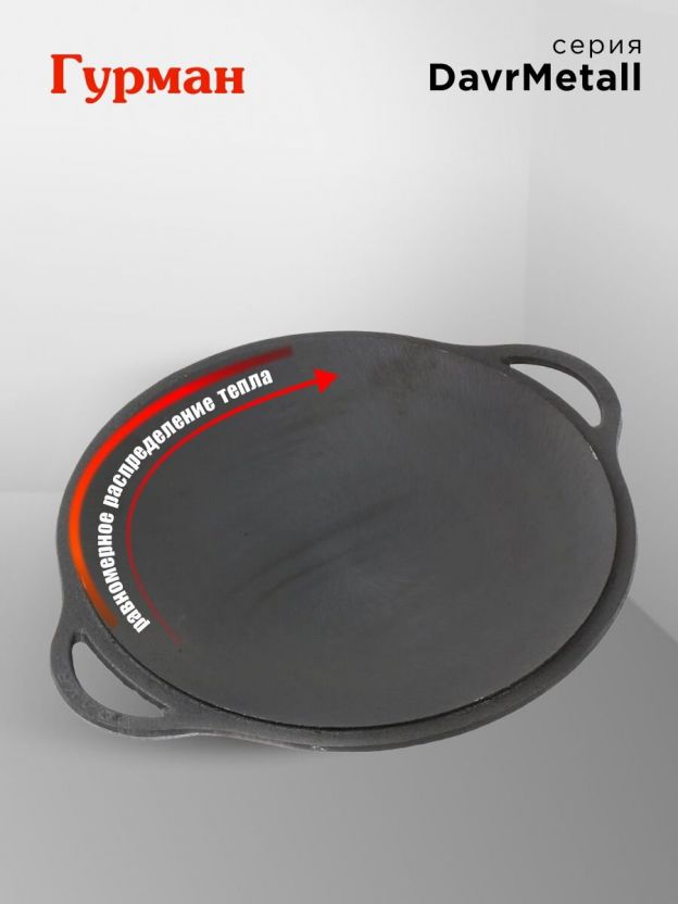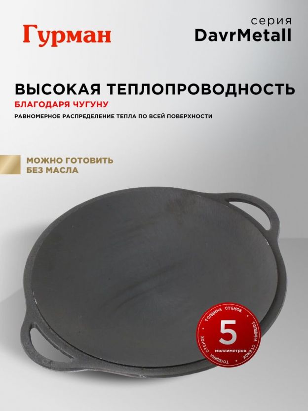 Садж-крышка чугунная 37 см DavrMetall Гурман: идеально для казана 8 л, долговечность 36 месяцев, универсально для домашней и дачной кухни.