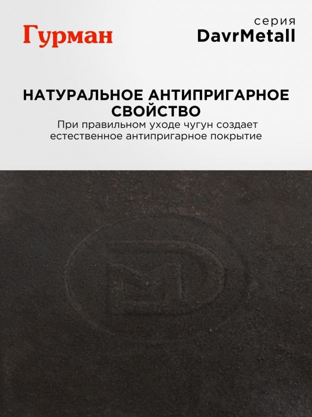 Антипригарного покрытия нет — это натуральный чугун. Мытьё в посудомоечной машине не рекомендуется, лучше ручная чистка для сохранения свойств материала.