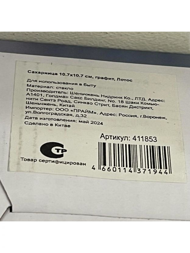 Сахарница 290 мл, стекло, 10.7х10.7 см, графит, Лотос, Y4-5379